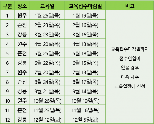 교육접수 마감일을 필히 확인하시길 바랍니다.